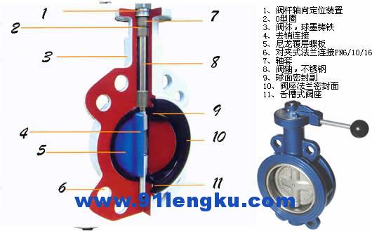 蝶阀的阀瓣是圆盘, 围绕阀座内的一个轴旋转, 旋角的大小, 便是阀门的开闭度。